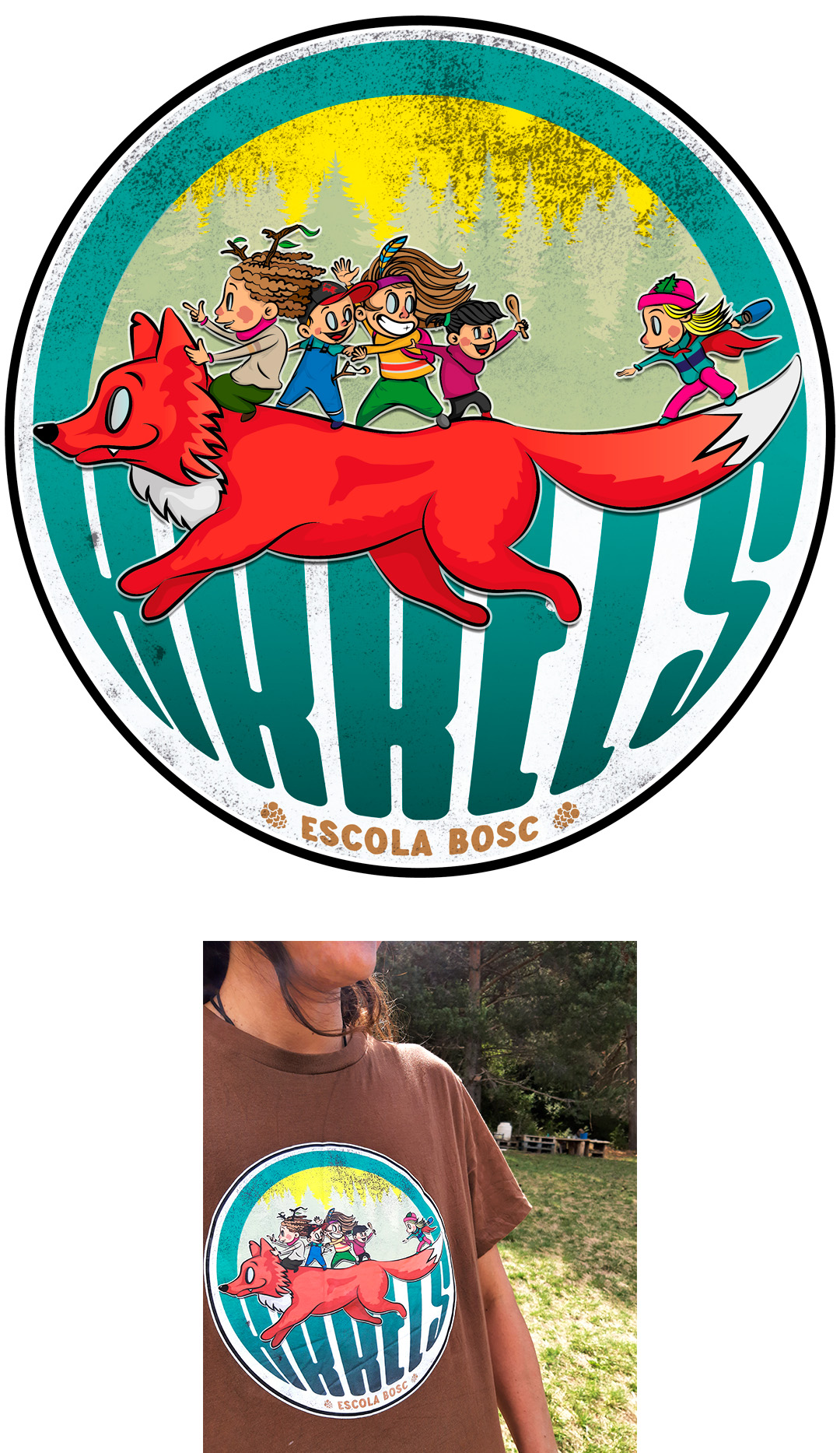 Illustration and logo for Arrels Escola Bosc, a Forest School from La Cerdanya (Catalunya, Spain).